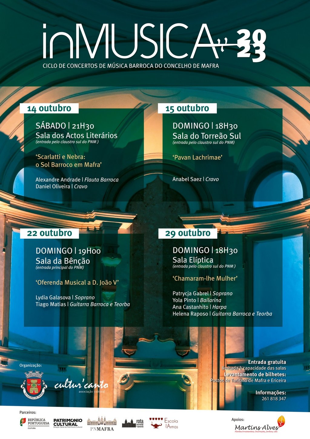 Adicionar a calendário2023-10-29 00:00:002023-10-29 00:00:00Europe/LisboninMusica - Ciclo de Concertos de Música Barroca do Concelho de MafraSala Elíptica (entrada pelo Claustro Sul do Palácio Nacional de Mafra)Cultur'Canto