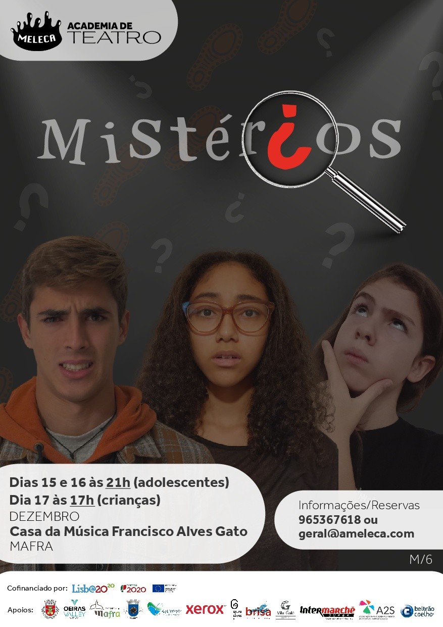 Adicionar a calendário2023-12-15 00:00:002023-12-17 00:00:00Europe/LisbonTeatro "Mistérios"Auditório da Casa da Música Francisco Alves Gato - MafraAcademia de Teatro A Meleca