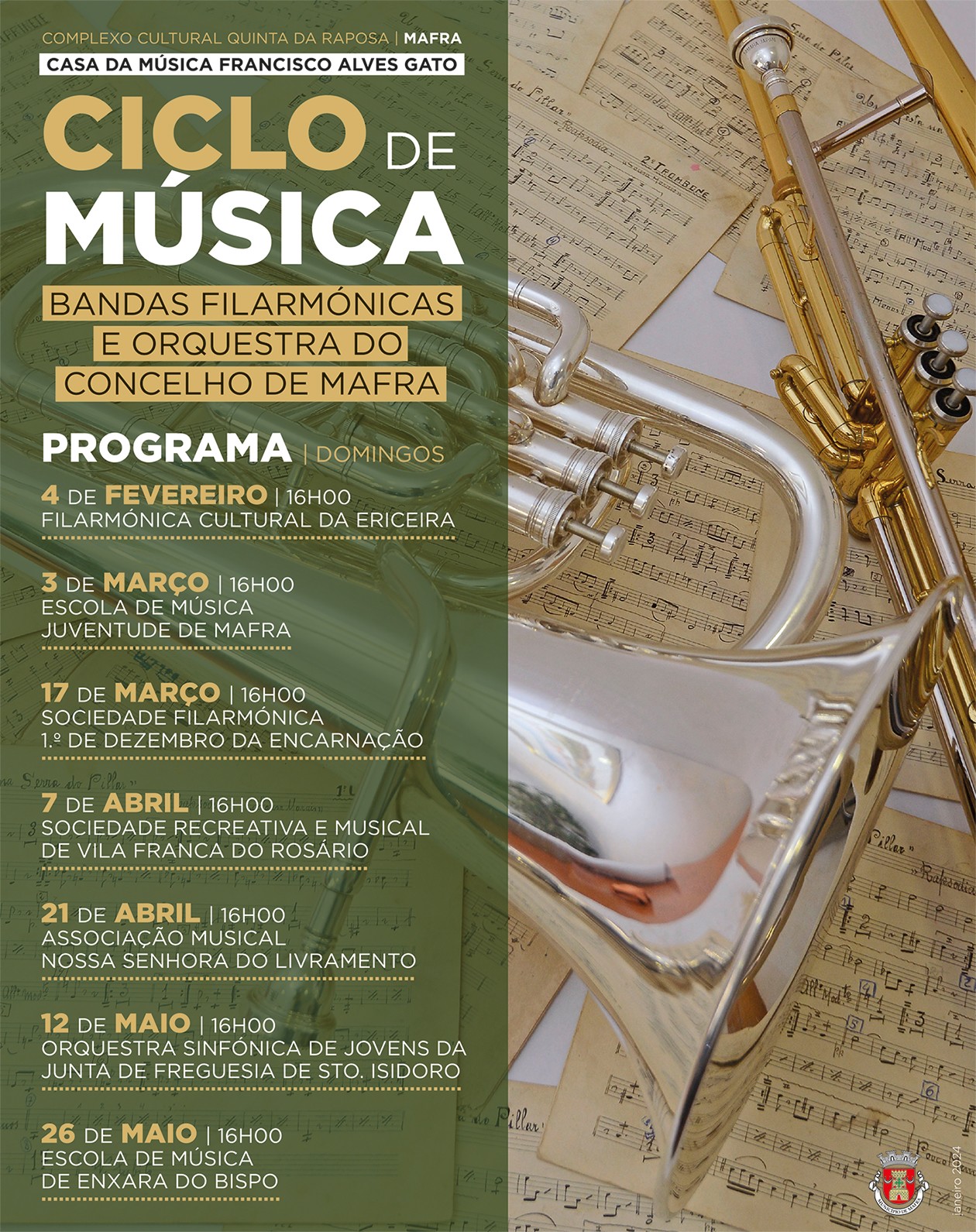 Adicionar a calendário2024-05-12 00:00:002024-05-12 00:00:00Europe/LisbonCiclo de Música "Bandas Filarmónicas e Orquestra do Concelho de Mafra"Auditório da Casa da Música Francisco Alves Gato - Mafra
