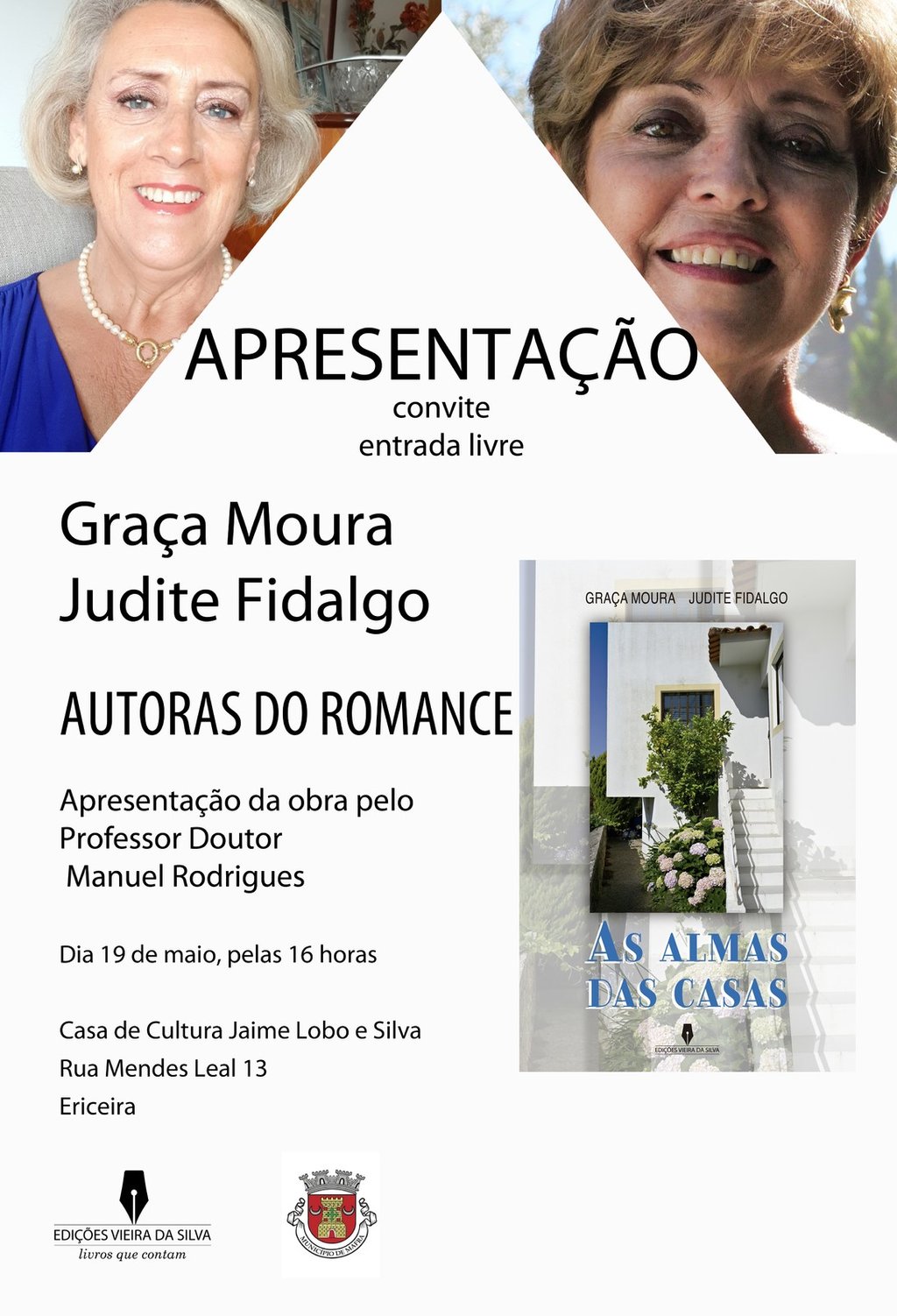 Adicionar a calendário2024-05-19 00:00:002024-05-19 00:00:00Europe/LisbonApresentação do Livro "As Almas das Casas", de Graça Moura e Judite FidalgoAuditório da Casa de Cultura Jaime Lobo e Silva - Ericeira