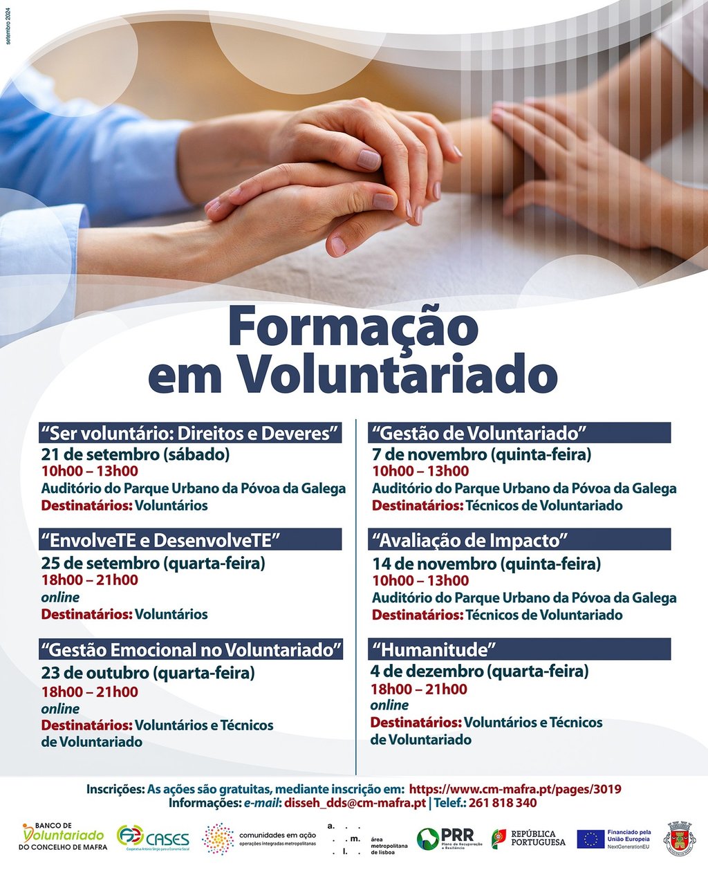 As ações são gratuitas, mediante inscrição em: https://www.cm-mafra.pt/pages/3019