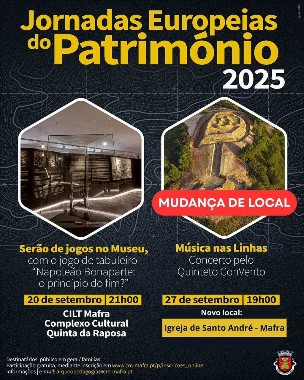 Adicionar a calendário2025-09-27 00:00:002025-09-27 00:00:00Europe/LisbonJornadas Europeias do PatrimónioDevido às condições climatéricas previstas para este fim de semana, a atividade irá ter lugar na Igreja de Santo AndréIgreja de Santo André - Mafra
